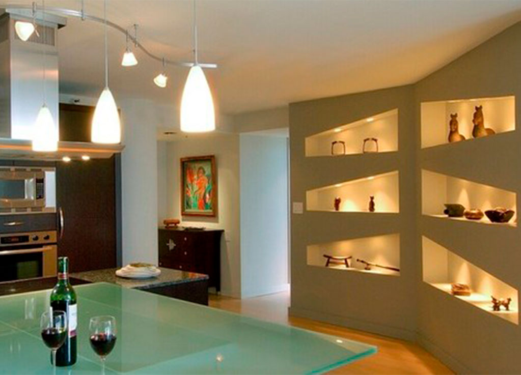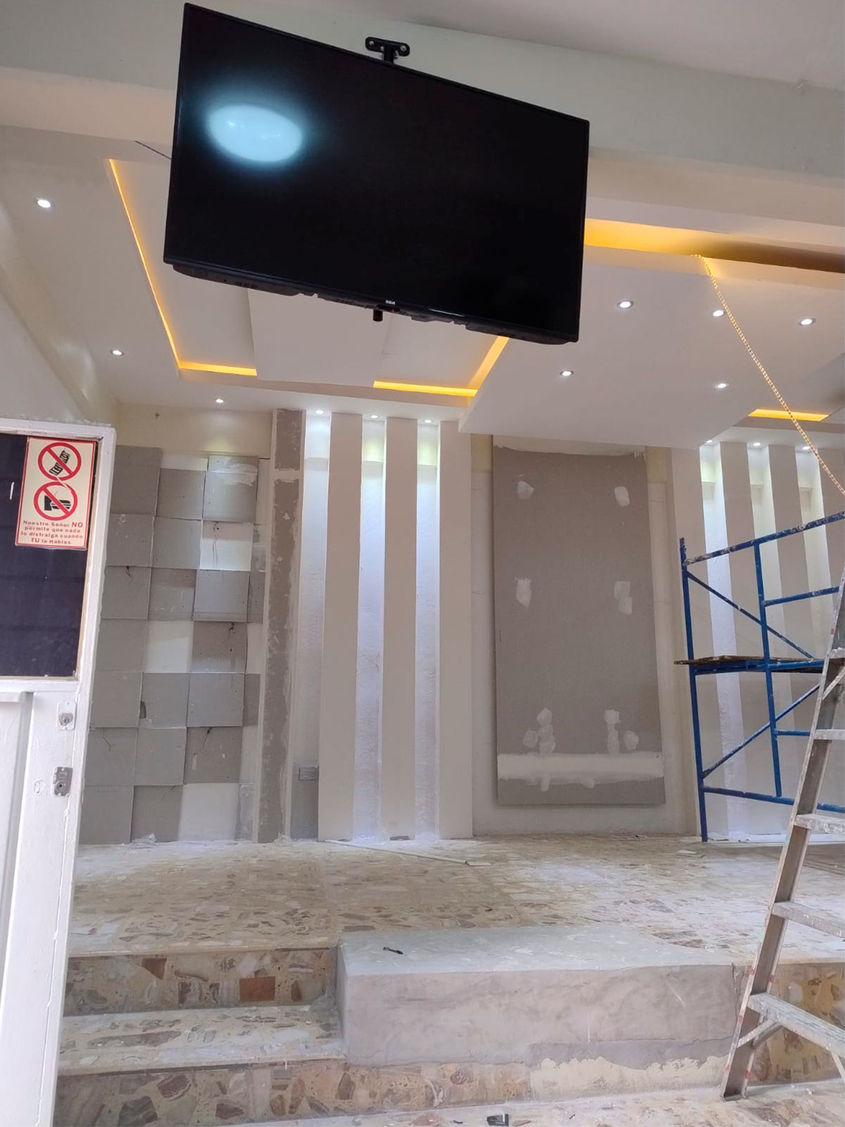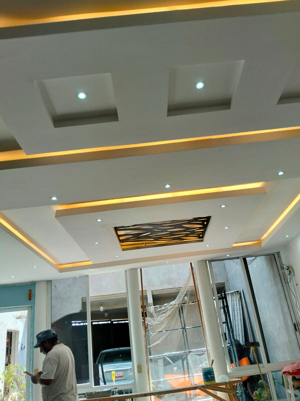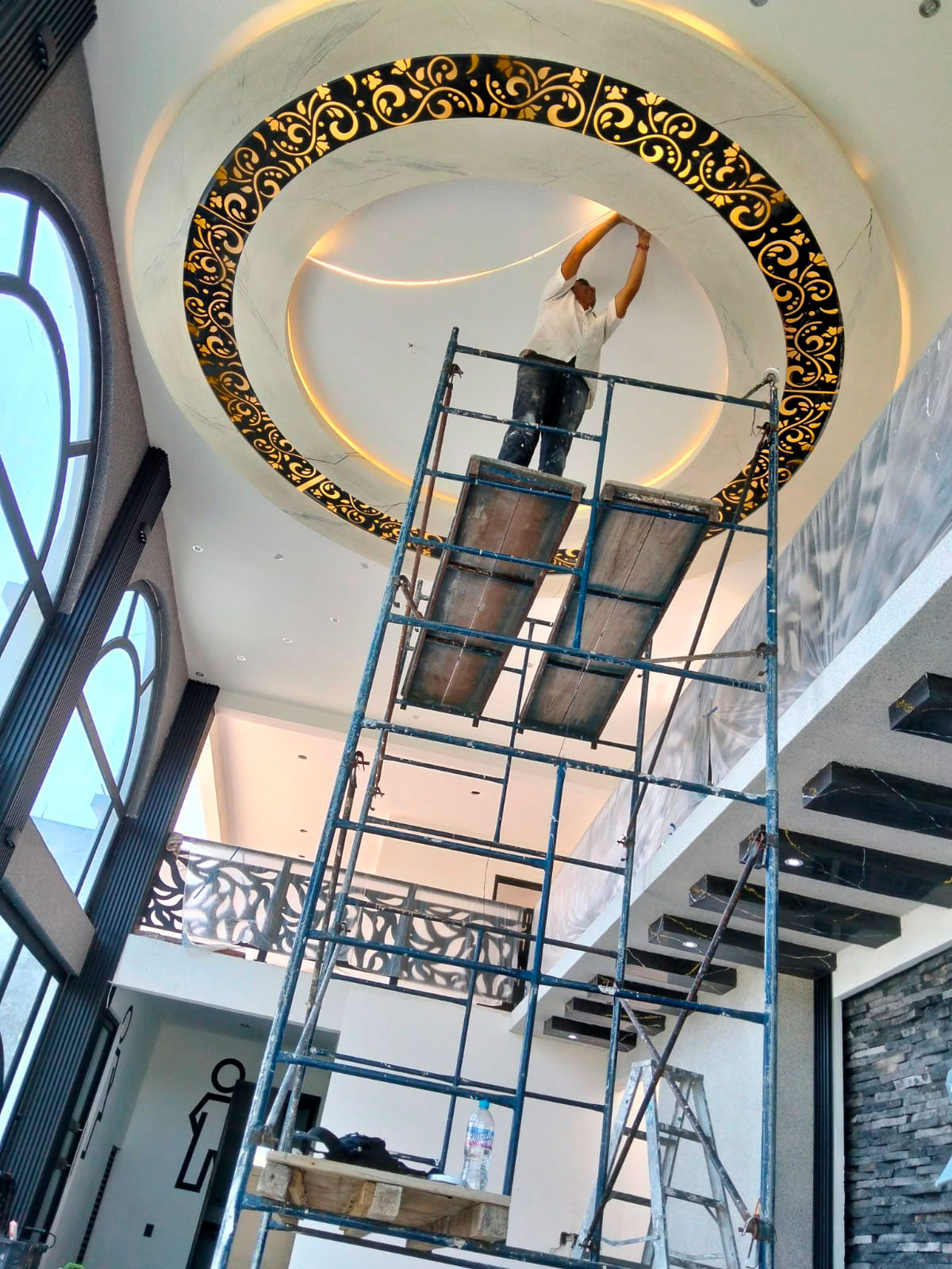 Diseñamos e instalamos decoraciones de interiores y exteriores con tablaroca (panel de yeso), ofreciendo soluciones versátiles como muros divisorios, techos falsos, nichos, libreros integrados, centros de entretenimiento modernos y mucho más